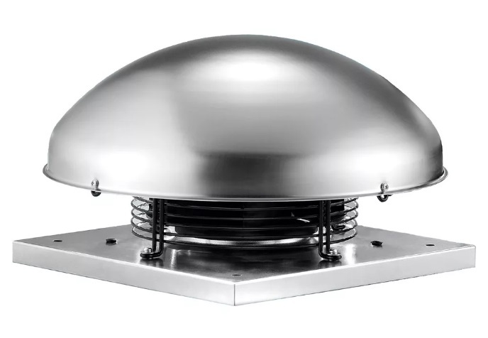 Вентилятор оборудован двигателем на шариковых подшипниках и колпаком, который защищает от попадания атмосферных осадков внутрь вентилятора и системы.